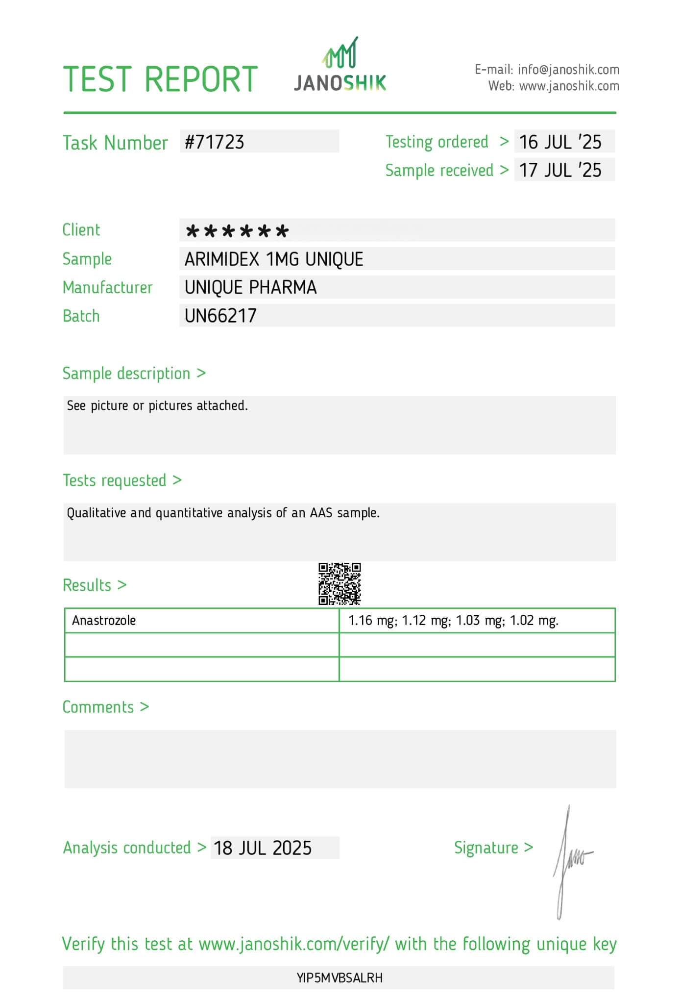 Be the first to review “Arimidex Anastrozole 1mg/Tab 100 Tabs (UP)”